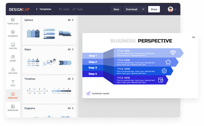 Dutzende Module lassen Bilder, Symbole und Text in ein geschlossenes Ganzes eingliedern, sodass visuelles Design einfacher und schneller wird.